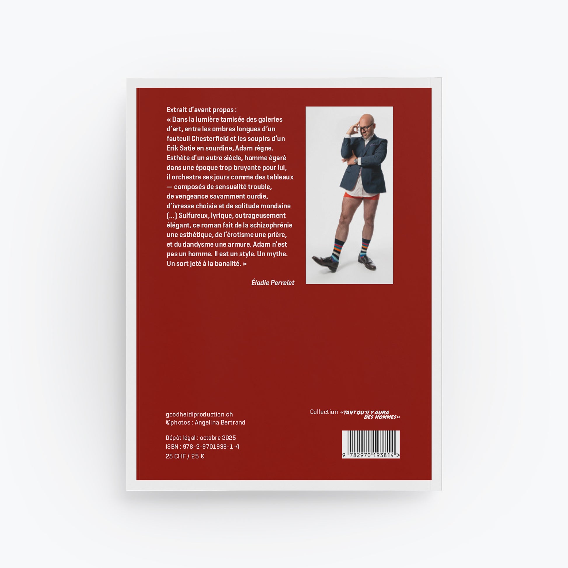 « Dans la lumière tamisée des galeries d’art, entre les ombres longues d’un fauteuil Chesterfield et les soupirs d’un Erik Satie en sourdine, Adam règne. Esthète d’un autre siècle, homme égaré dans une époque trop bruyante pour lui, il orchestre ses jours comme des tableaux — composés de sensualité trouble, de vengeance savamment ourdie, d’ivresse choisie et de solitude mondaine (…) Sulfureux, lyrique, outrageusement élégant, ce roman fait de la schizophrénie une esthétique, de l’érotisme une prière, et du dandysme une armure. Adam n’est pas un homme. Il est un style. Un mythe. Un sort jeté à la banalité. » Élodie Perrelet